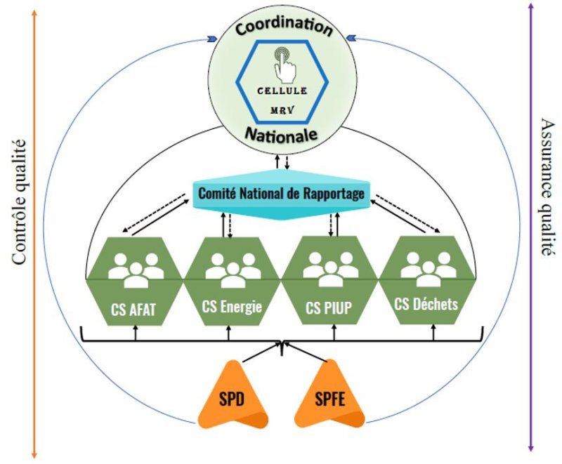 Le dispositif institutionnel est bâti autour d’un comité directeur de suivi, d’une unité de gestion des inventaires de gaz à effet de serre et d’un pool d’experts sectoriels :